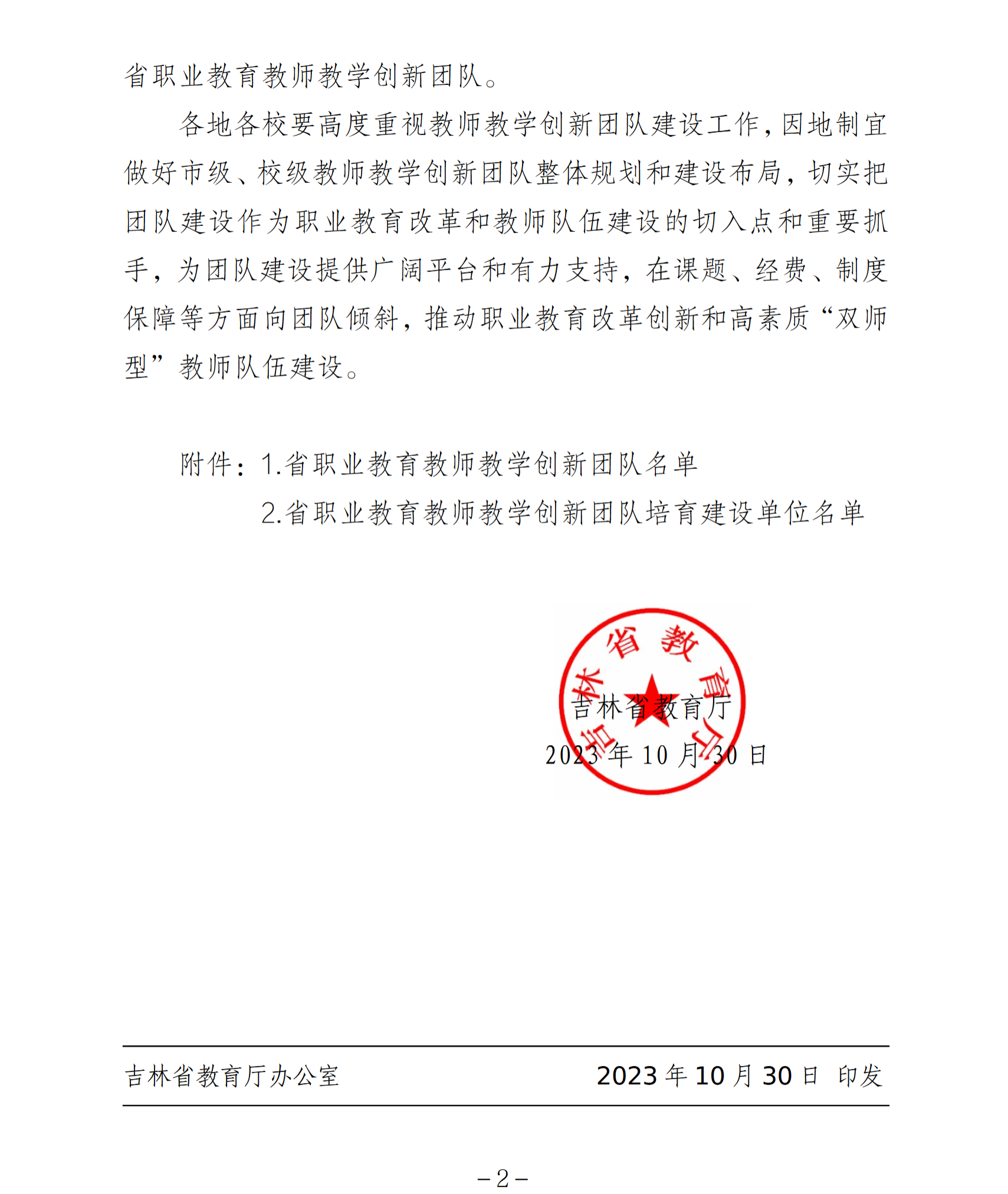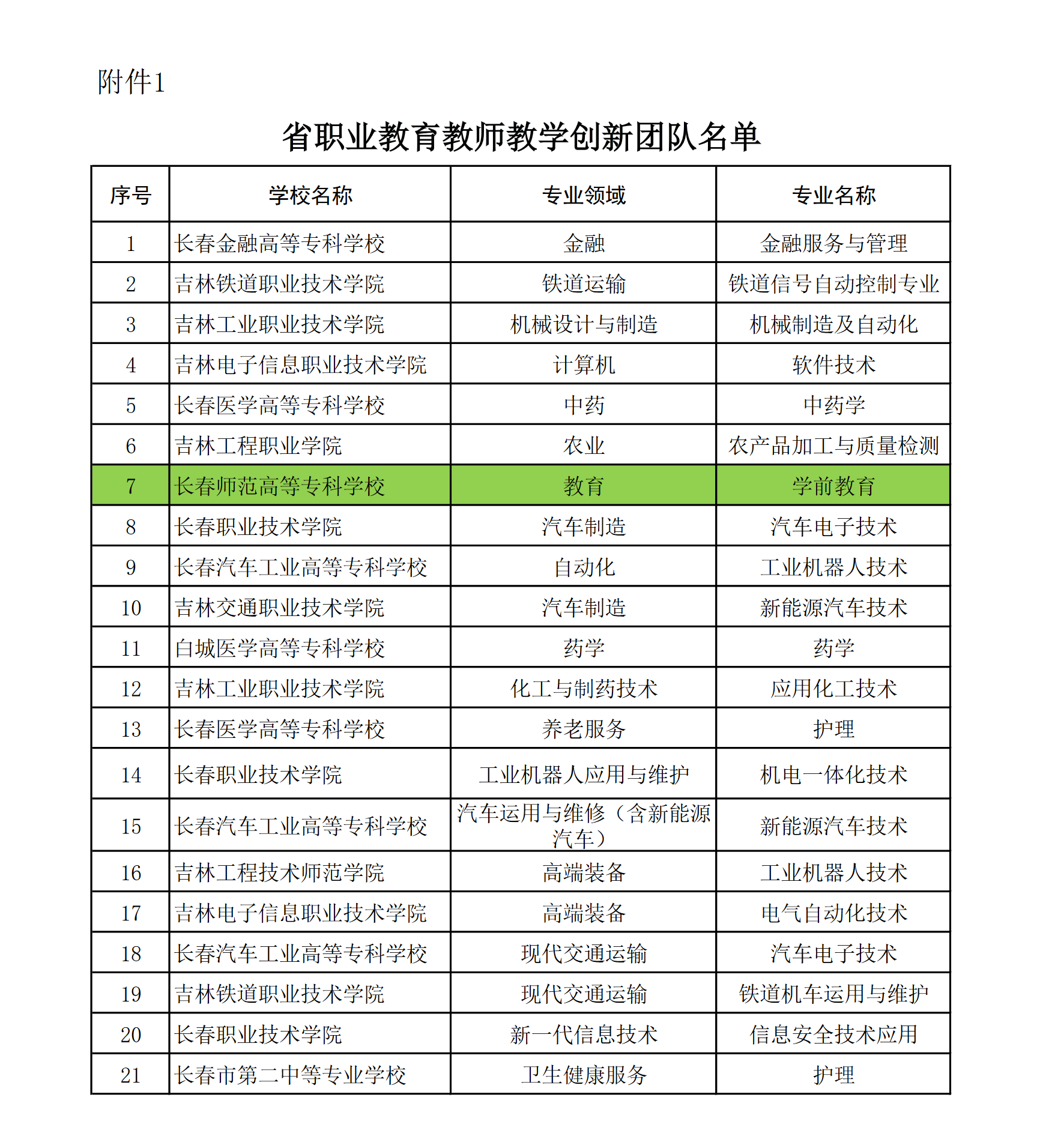 近日,吉林省教育厅公布吉林省职业教育教师创新团队名单。我校学前教育教师教学创新团队首次成功获批,并获得第三批国家级职业教育教师创新团队的省级推荐资格。此次成功入围,实现了我校省级教师教学创新团队零的突破,也是学校高质量发展所取得的阶段性成就。