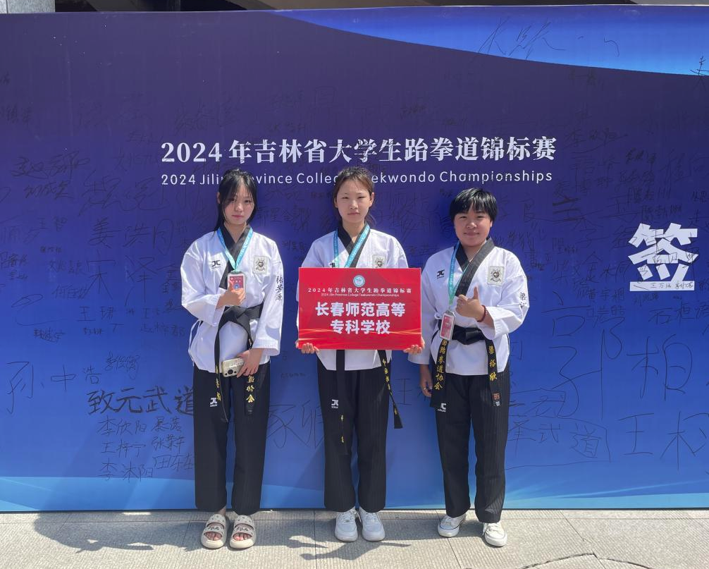 我校代表队在领队冷昊展老师、教练许长鸣老师带领下,在比赛中展现出了优秀的运动能力与竞技水平。最终,学前教育学院23级学前教育12班梁裕欣获得品势(高职组)女子亚军、23级学前教育13班张芳源获得品势(高职组)女子季军、23级学前教育13班徐梦笛获得品势(高职组)女子第五名的优异成绩。