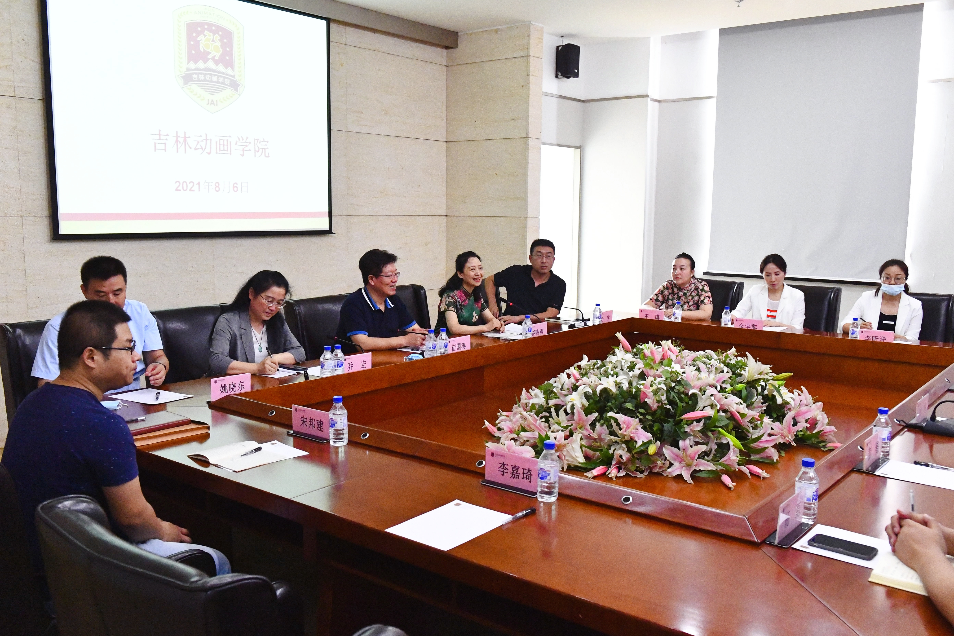 2021年8月6日上午,我校党委书记崔国涛、校务委员胡海燕、公共教学部主任乔宏、信息技术学院副院长全宇、公共教学部负责人姚晓东及相关教师前往吉林动画学院参观学习。吉林动画学院副校长刘欣、校长助理彭巍、教务部副部长王莉莉、综合办杨磊参加交流会。