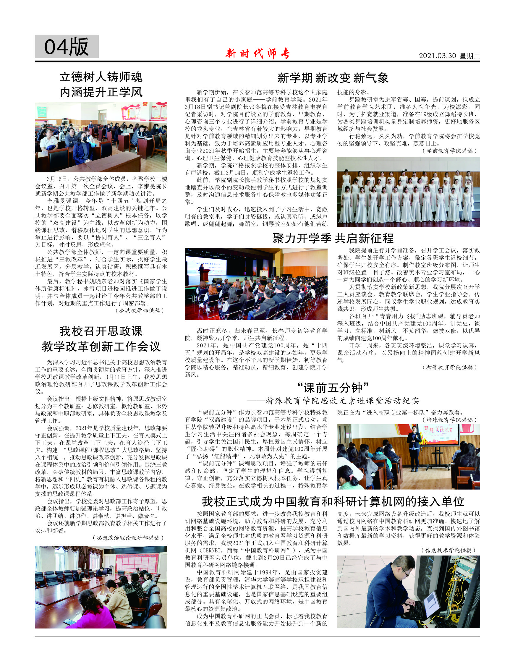 新时代师专工作简报第一期-国产一区二区日本在线-Changchun Normal College-官方网站