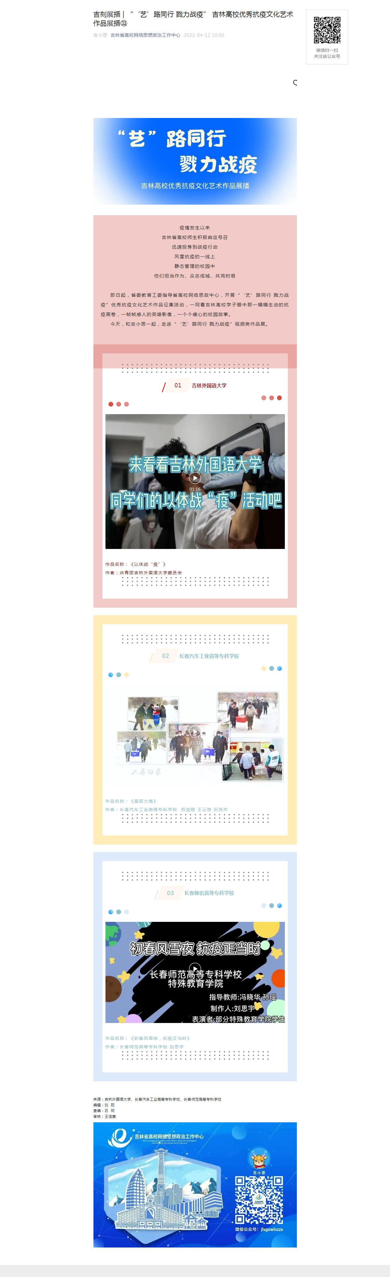 吉刻展播 | “‘艺’路同行 戮力战疫” 吉林高校优秀抗疫文化艺术作品展播㉝