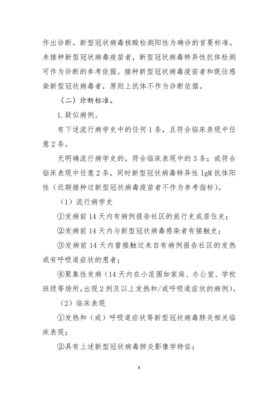 为进一步做好新冠肺炎医疗救治工作,切实提高规范化、同质化诊疗水平,国家卫生健康委和国家中医药管理局组织专家对《新型冠状病毒肺炎诊疗方案(试行第八版修订版)》进行了修订,形成了《新型冠状病毒肺炎诊疗方案(试行第九版)》,并印发各地参照执行。新版诊疗方案是在认真研究德尔塔、奥密克戎等变异毒株传播特点和病例特征,深入分析相关研究成果的基础上形成的。重点修订内容如下: