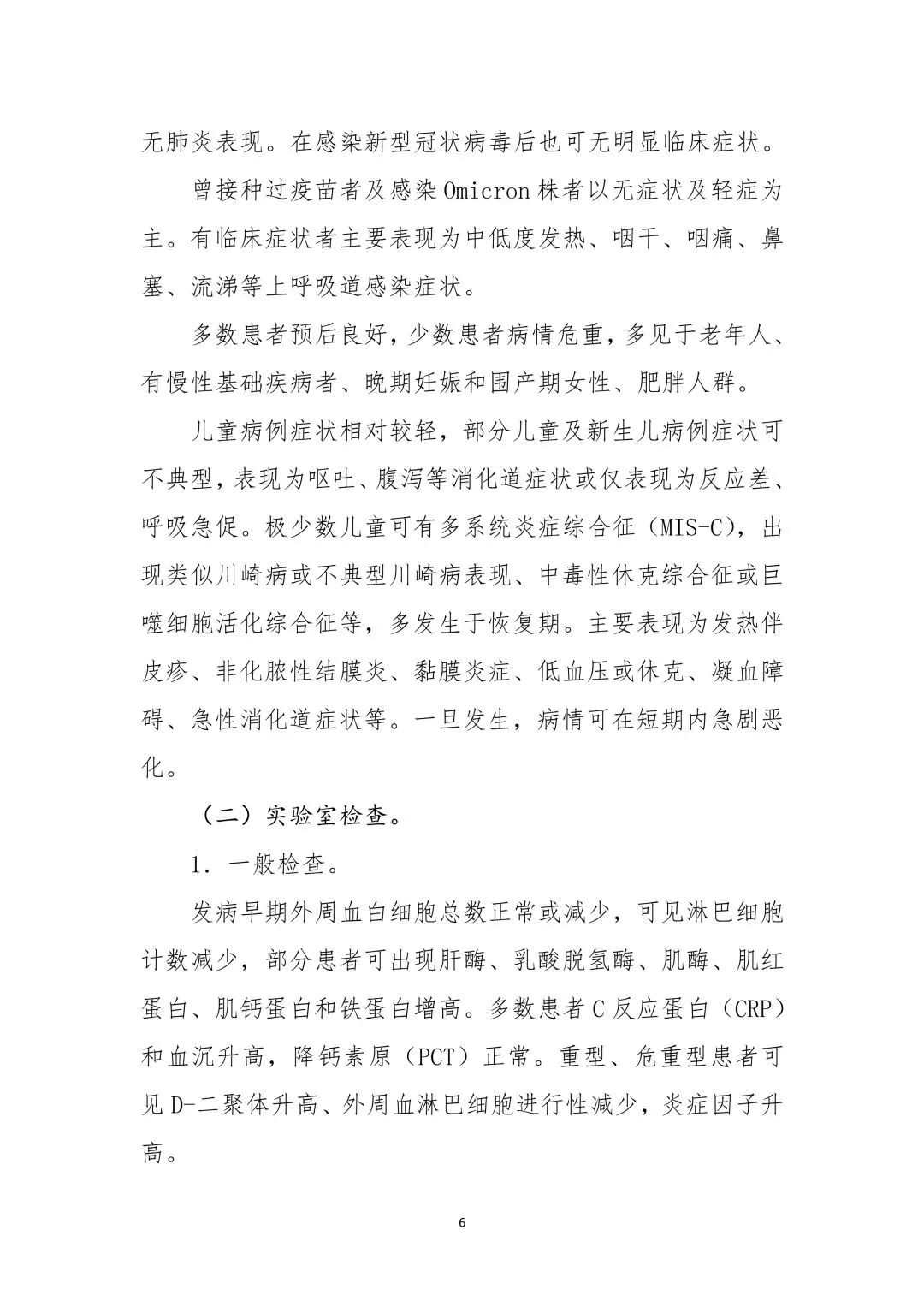 当前,新型冠状病毒肺炎疫情仍在世界范围内持续流行,奥密克戎(Omicron)毒株已取代德尔塔(Delta)毒株成为主要流行株,新型冠状病毒肺炎患者临床表现呈现新的特点,且针对新型冠状病毒肺炎治疗的新药物已相继上市,治疗经验和治疗手段进一步丰富。为进一步科学、规范做好新型冠状病毒肺炎诊疗工作,我们组织专家对《新型冠状病毒肺炎诊疗方案(试行第八版修订版)》相关内容进行修订,形成了《新型冠状病毒肺炎诊疗方案(试行第九版)》。现印发给你们,请参照执行。